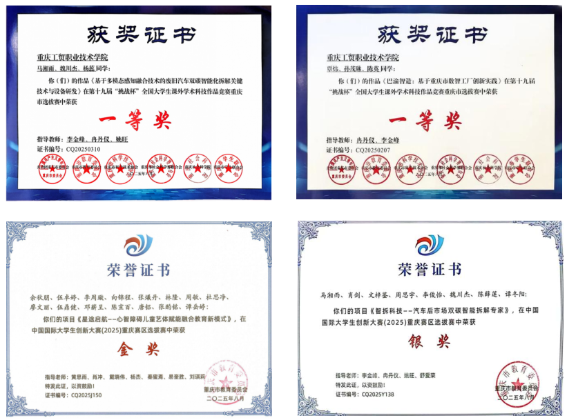 近期,在第十九届 “挑战杯” 全国大学生课外学术科技作品竞赛重庆市选拔赛、中国国际大学生创新大赛(2025)重庆赛区选拔赛两大赛事中,财经学院师生凭借 “财经 + 行业” 的深度融合实践,斩获市级 3 个一等奖、3 个二等奖、2 个三等奖的亮眼成绩,充分展现学院将财经专业能力转化为多领域创新动能的扎实成效。