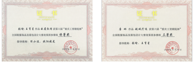 第六届“重庆工贸职院杯”全国鞋服饰品及箱包设计大赛于2025年11月在浙江温州落下帷幕。我院师生在此次大赛中斩获特等奖1个,三等奖1个。